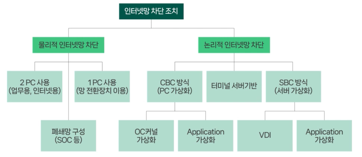 | 인터넷망 차단 | 처리하는 이용자의 개인정보 수가 100만명 이상인 경우 개인정보취급자의 컴퓨터 등 | |