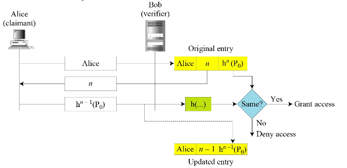 사용자와 시스템이 미리 여러 일회용 비밀번호 목록을 만들어서 양쪽에서 보관