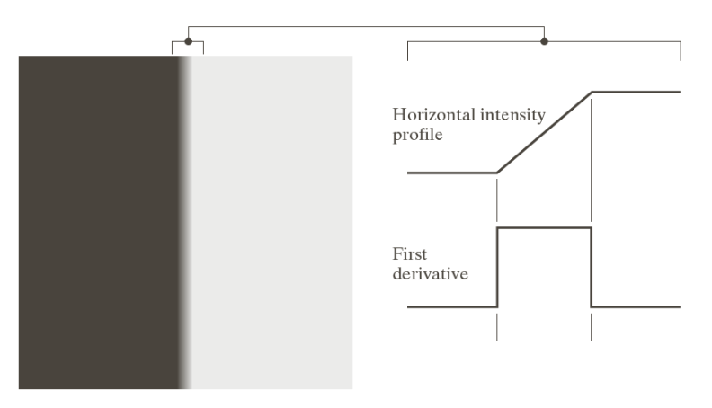 1차 미분 (first derivative) 의 크기를 사용하여 edge를 감지