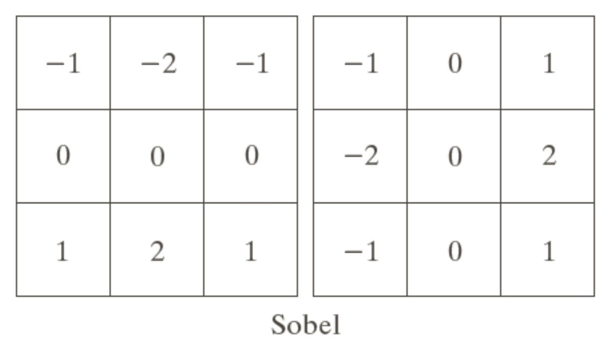 단순 차분 연산에 가중치를 줘 수평,수직 방향 edge를 검출한다.