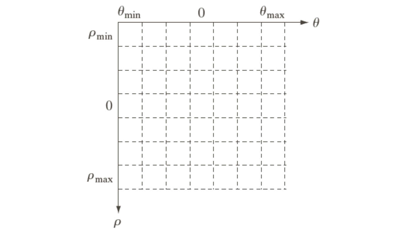 실제 Hough transform은 대신 극 좌표게 () 표현을 사용한다.