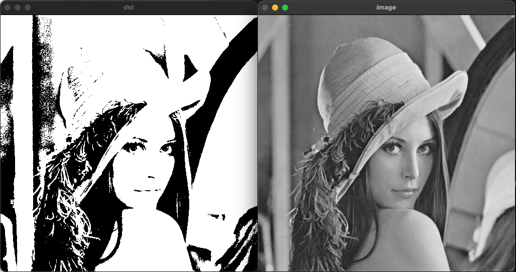threshold(image, dst, 100, 255, THRESH_BINARY);