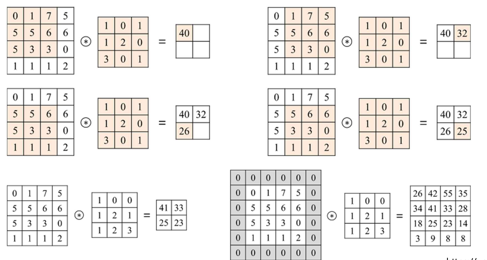 아래 예시처럼 4x4 결과를 가지기 위해 input 이미지에 padding을 붙일 수 있다.